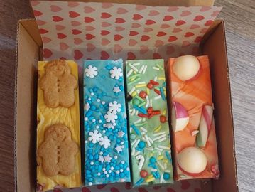 Our fudge bars can be bought individually or in multiples. Each bar is approx 3" x 1".