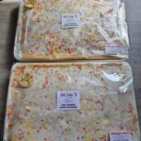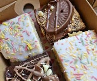 Our tray bakes are approx in 2" x 2" individual pieces or a tray 12" x 8".